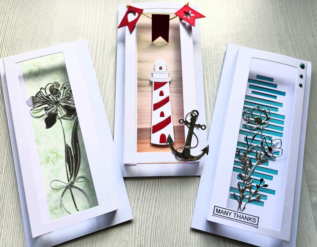I used DL cards but you could make this style using any size card you like. You can use any craft supplies you may already have for these and you can cut your window with a craft knife and ruler if you wish.