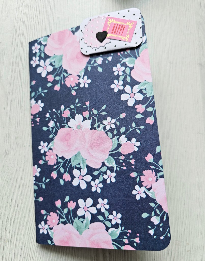 THE TWO LITTLE CARDS I MADE (FOLDED PAPER) MEASURED 2 3/4 X 5 1/2″ SCORED IN THE MIDDLE.