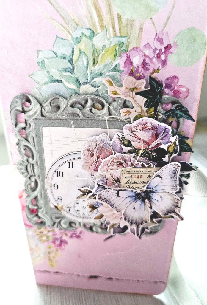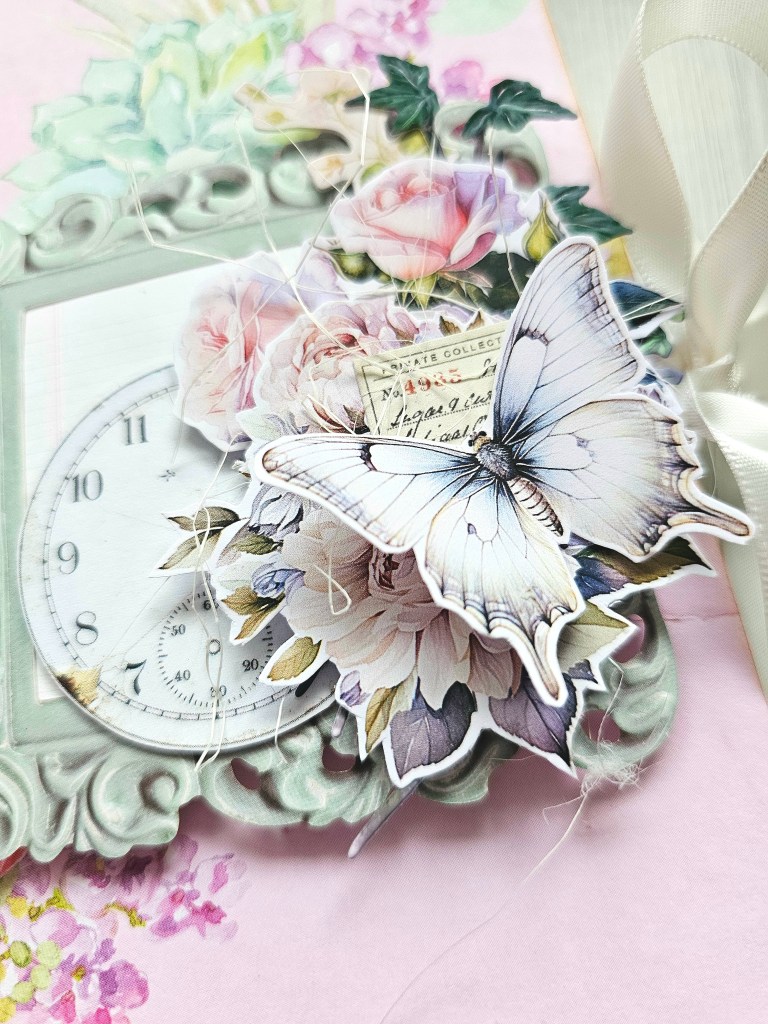 I used a Mintay paper pad called endless love, its so pretty. The ephemera is from Etsy, I just printed it and fussy cut it out. I love fussy cutting.