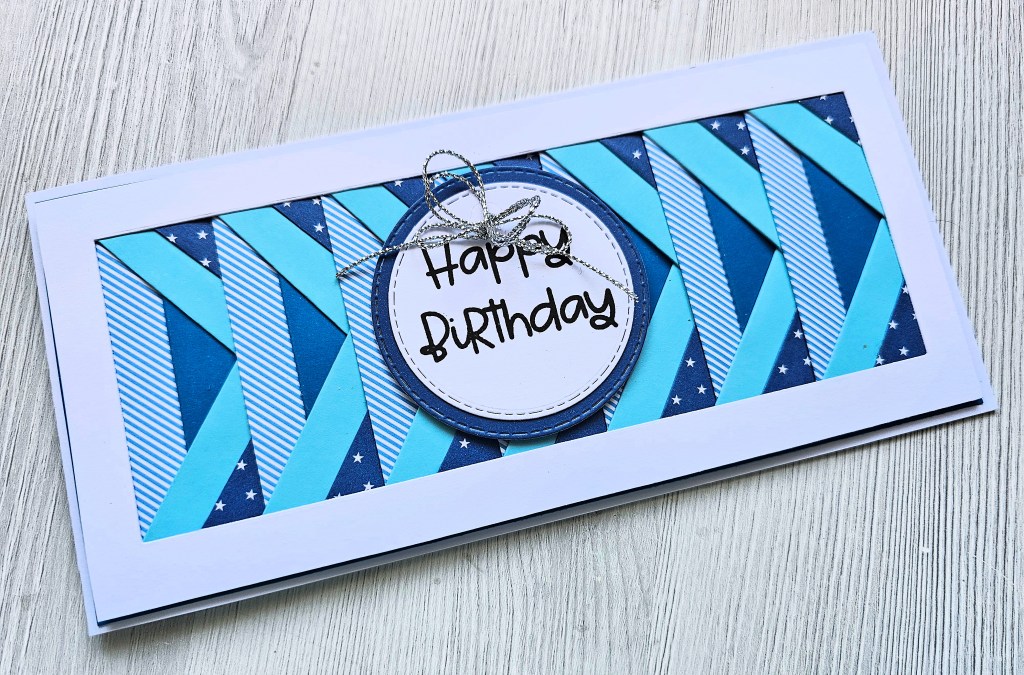 I am back this week with some really easy & fun Men’s card ideas! It’s very similar to Iris folding in that you use thin strips of paper to make your pattern. I have also included all the pictures below of the patterns so that you can make them yourself.